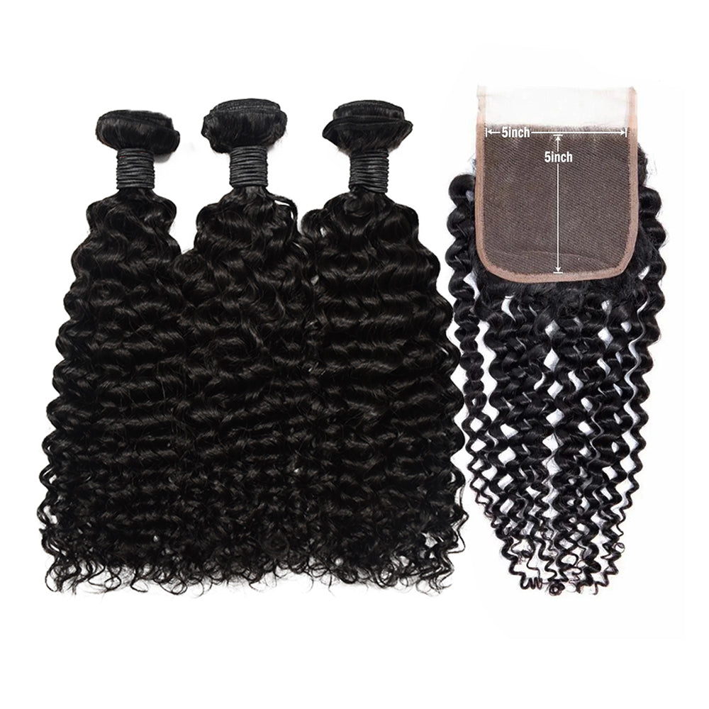 | Hair Bundles | Curly Bundles With Closure 100% Unprocessed Human Hair 3 Bundles Curly With 5*5 HD Lace Closure |
