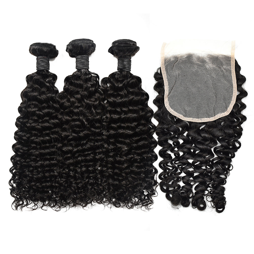 | Hair Bundles | Curly Hair Bundles With Closure 100% Unprocessed Human Hair 3 Bundles Curly With 5*5 Free Lace Closure |