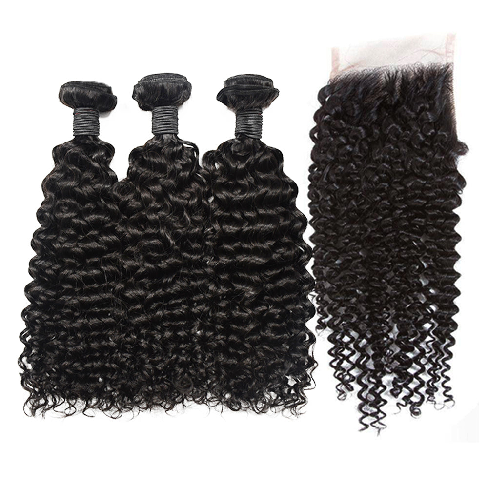 | Hair Bundles | Curly Bundles With Closure 100% Unprocessed Human Hair 3 Bundles Curly With 6*6 HD Lace Closure |