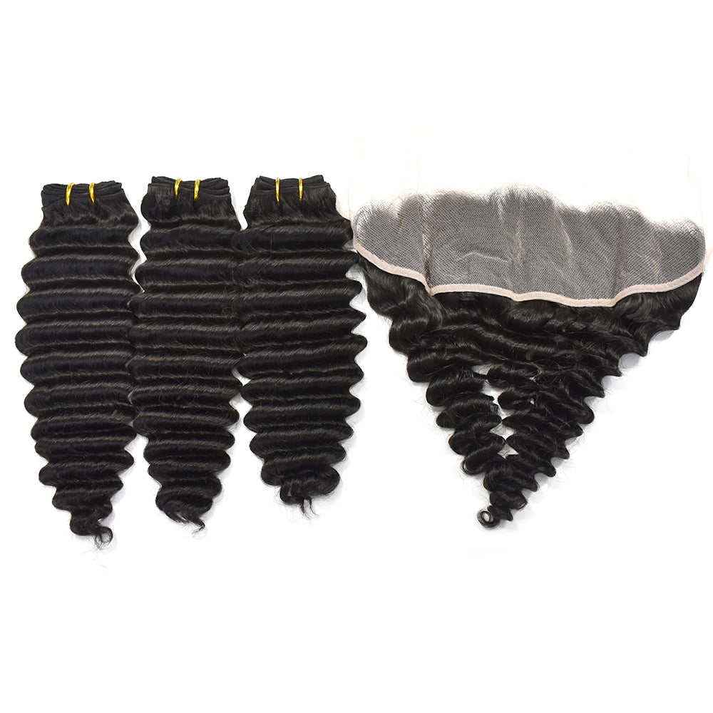 | Hair Bundles | Deep Wave Bundles With Frontal 100% Unprocessed Human Hair 3 Bundles Deep Wave With 13*4 Transparent Lace Frontal |