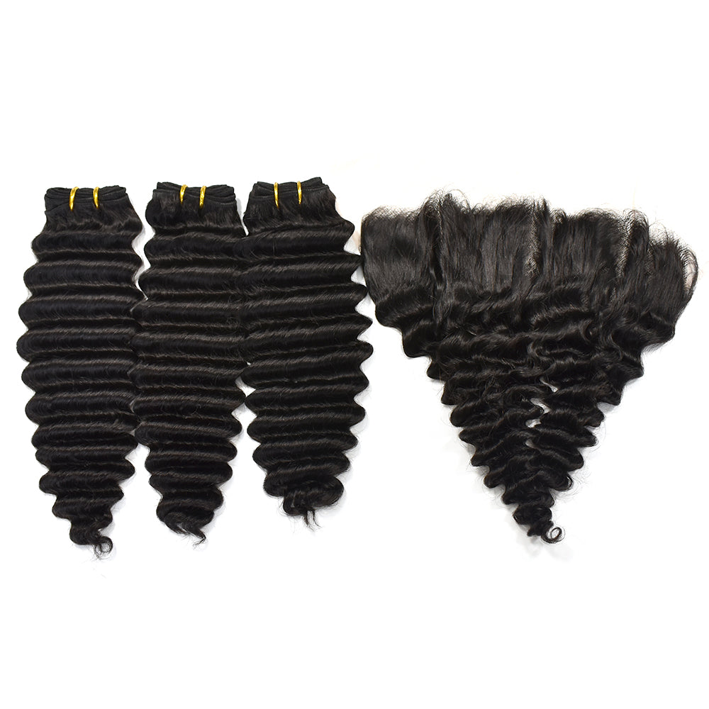 | Hair Bundles | Deep Wave Bundles With Frontal 100% Unprocessed Human Hair 3 Bundles Deep Wave With 13*6 Transparent Lace Frontal |