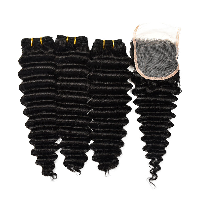| Hair Bundles | Deep Wave Bundles With Closure 100% Unprocessed Human Hair 3 Bundles Deep Wave With 4*4 Free Lace Closure |