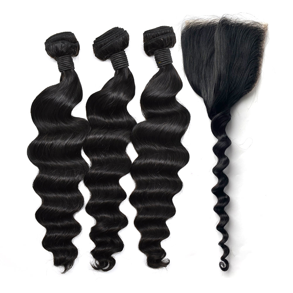 | Hair Bundles | Loose Body Wave Bundles With Closure 100% Unprocessed Human Hair 3 Bundles Loose Body Wave With 5*5 HD Lace Closure |