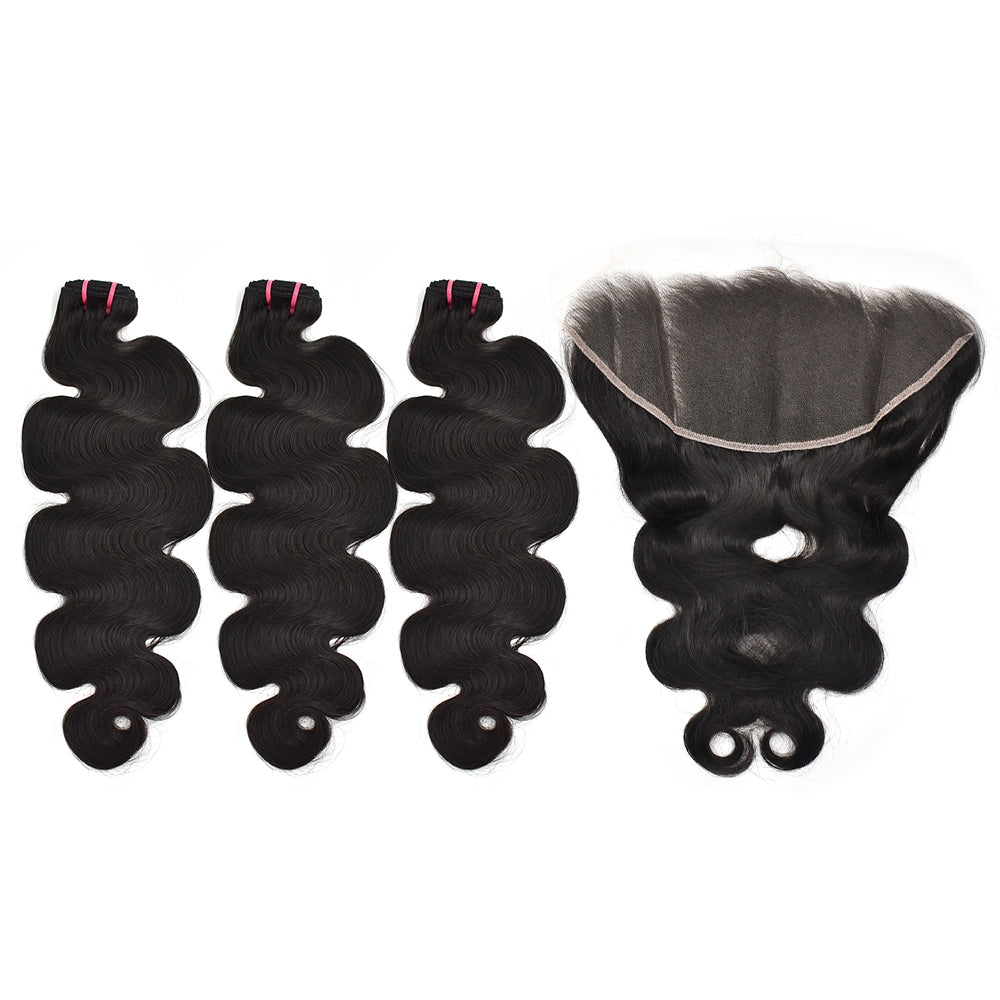 | Hair Bundles | Raw Hair Body Wave Bundles With Frontal 100% Unprocessed Human Hair 3 Bundles Body Wave With 13*6 HD Lace Frontal |