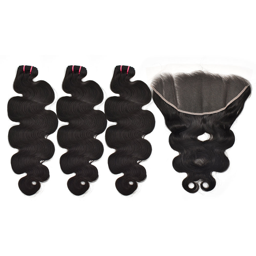 | Hair Bundles | Raw Hair Body Wave Bundles With Frontal 100% Unprocessed Human Hair 3 Bundles Body Wave With 13*6 Transparent Lace Frontal |