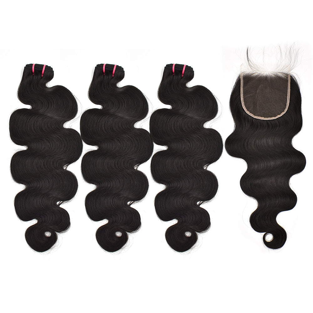 | Hair Bundles | Raw Hair Body Wave Bundles With Closure 100% Unprocessed Human Hair 3 Bundles Body Wave With 5x5 HD Lace Closure |