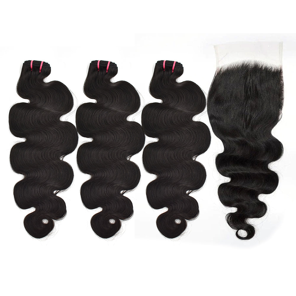 | Hair Bundles | Raw Hair Body Wave Bundles With Closure 100% Unprocessed Human Hair 3 Bundles Body Wave With 6*6 HD Lace Closure |