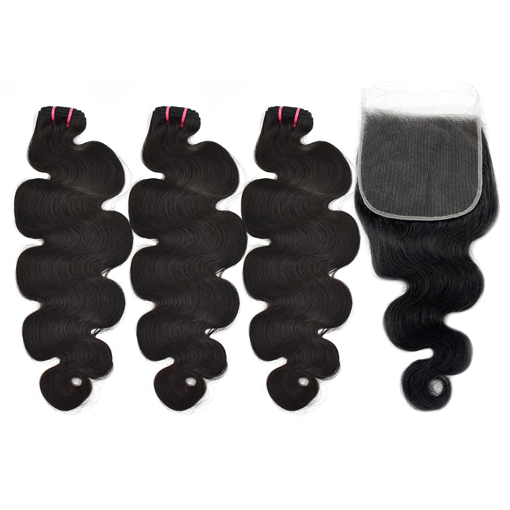 | Hair Bundles | Raw Hair Body Wave Bundles With Closure 100% Unprocessed Human Hair 3 Bundles Body Wave With 7*7 HD Lace Closure |
