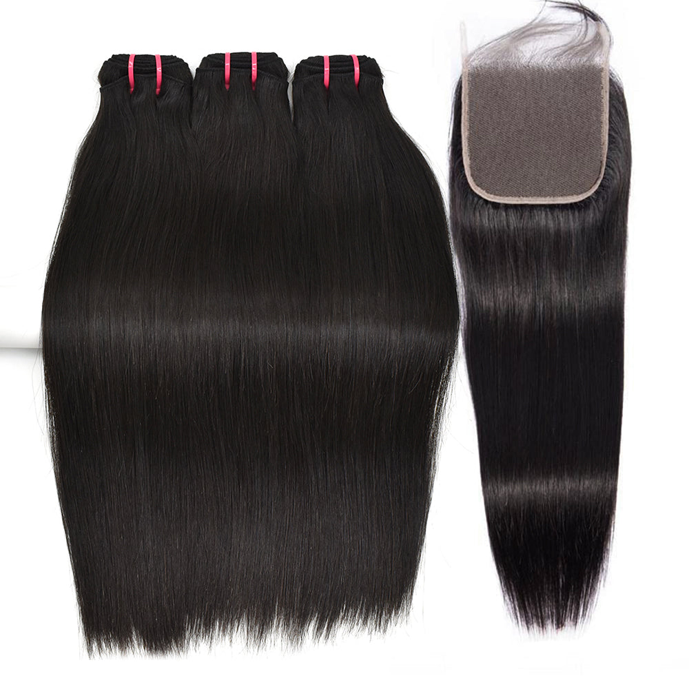 | Hair Bundles | Raw Hair Straight Bundles With Closure 100% Unprocessed Human Hair 3 Bundles Straight With 4*4 HD Lace Closure |