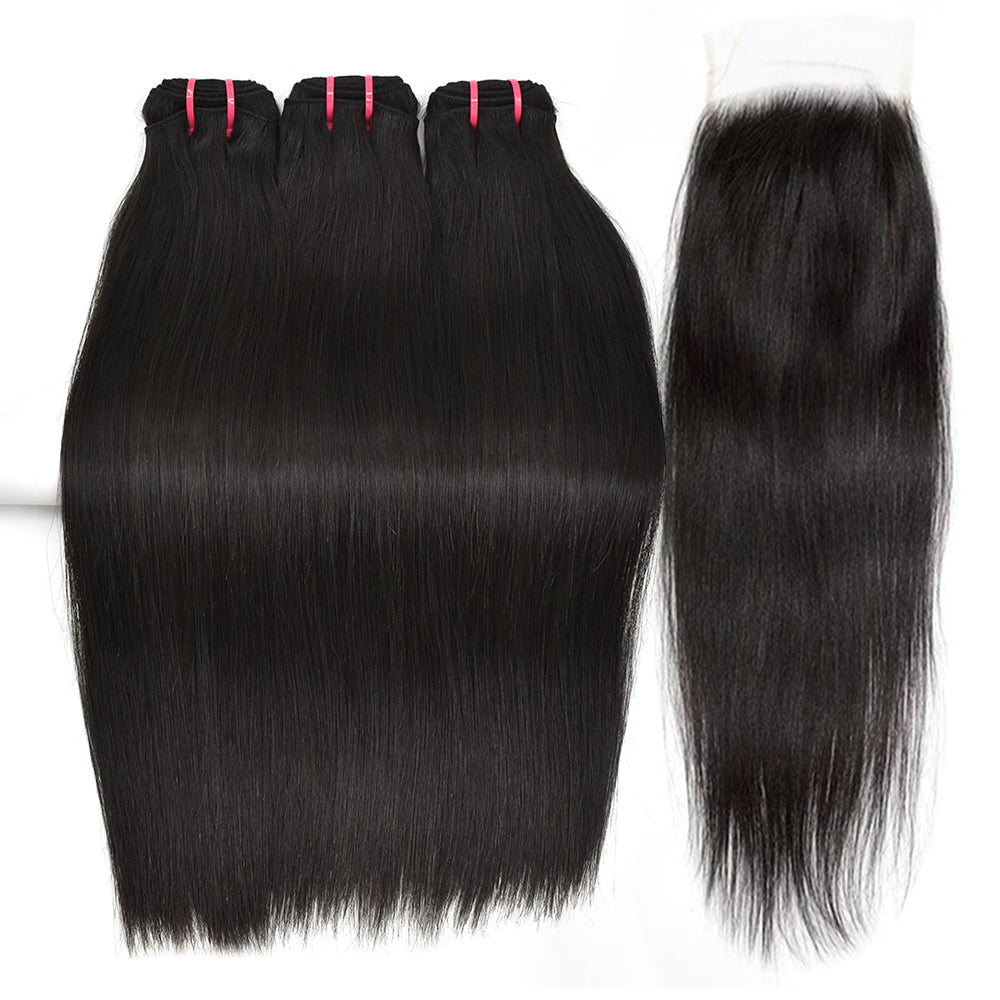| Hair Bundles | Raw Hair Straight Bundles With Closure 100% Unprocessed Human Hair 3 Bundles Straight With 6*6 HD Lace Closure |