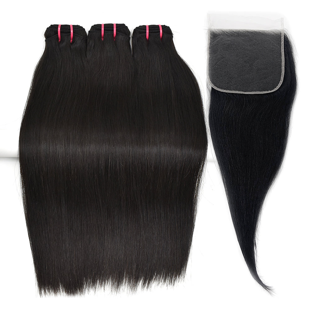 | Hair Bundles | Raw Hair Straight Bundles With Closure 100% Unprocessed Human Hair 3 Bundles Straight With 7*7 HD Lace Closure |