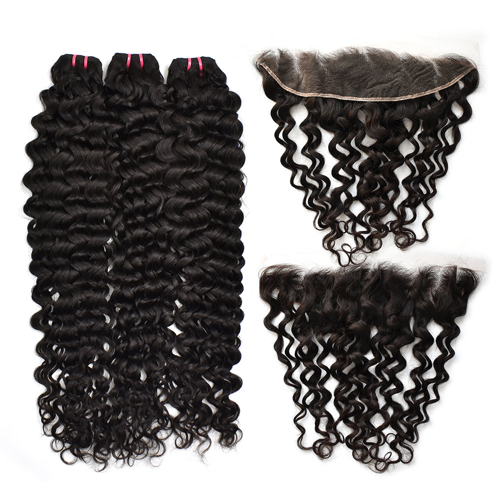| Hair Bundles | Raw Hair Water Wave Bundles With Frontal 100% Unprocessed Human Hair 3 Bundles Water Wave With 13*4 HD Lace Frontal |