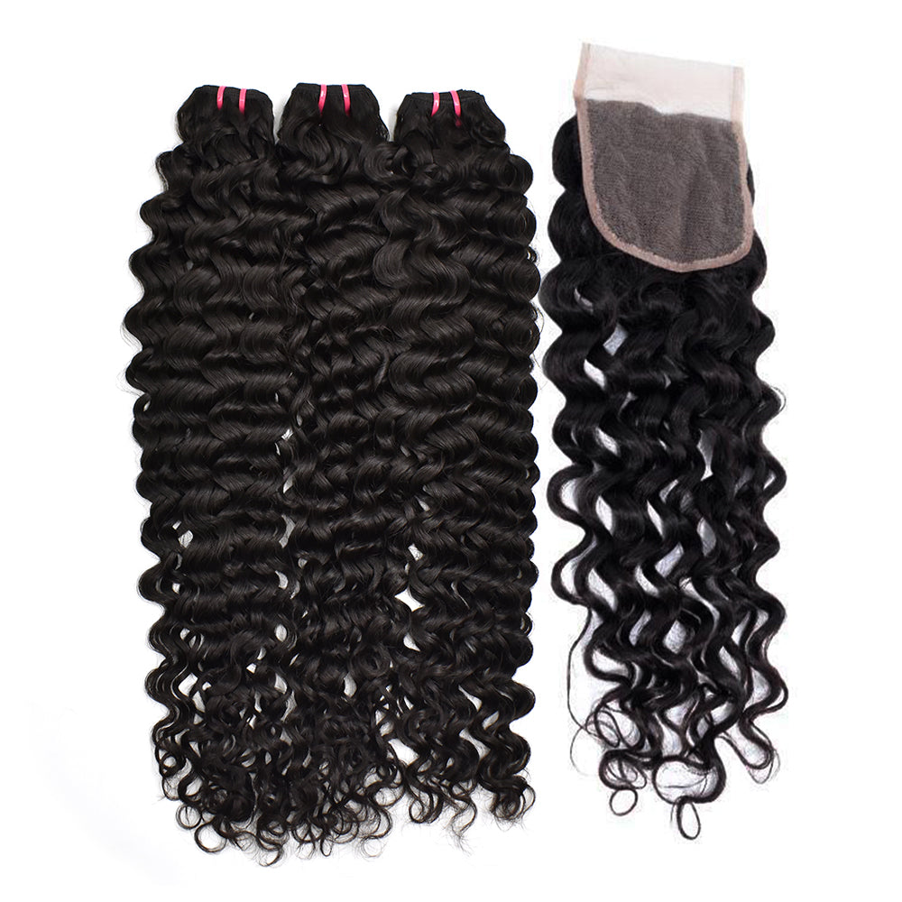 | Hair Bundles | Raw Hair Water Wave Bundles With Closure 100% Unprocessed Human Hair 3 Bundles Water Wave With 4*4 HD Lace Closure |