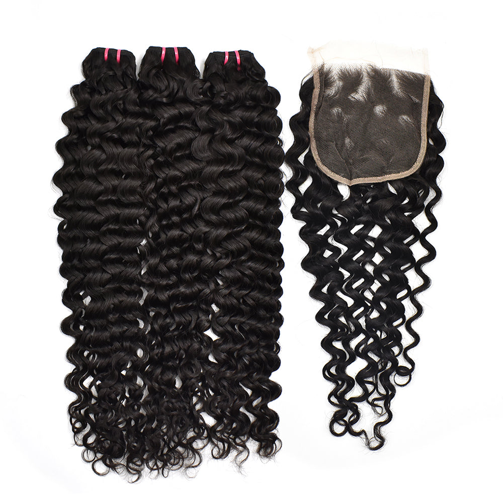 | Hair Bundles | Raw Hair Water Wave Bundles With Closure 100% Unprocessed Human Hair 3 Bundles Water Wave With 5*5 HD Lace Closure |