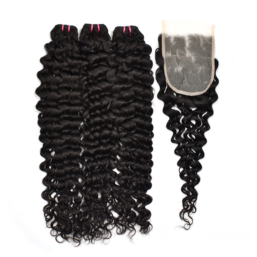 | Hair Bundles | Raw Hair Water Wave Hair Bundles With Closure 100% Unprocessed Human Hair 3 Bundles Water Wave With 5*5 Transparent Lace Closure |