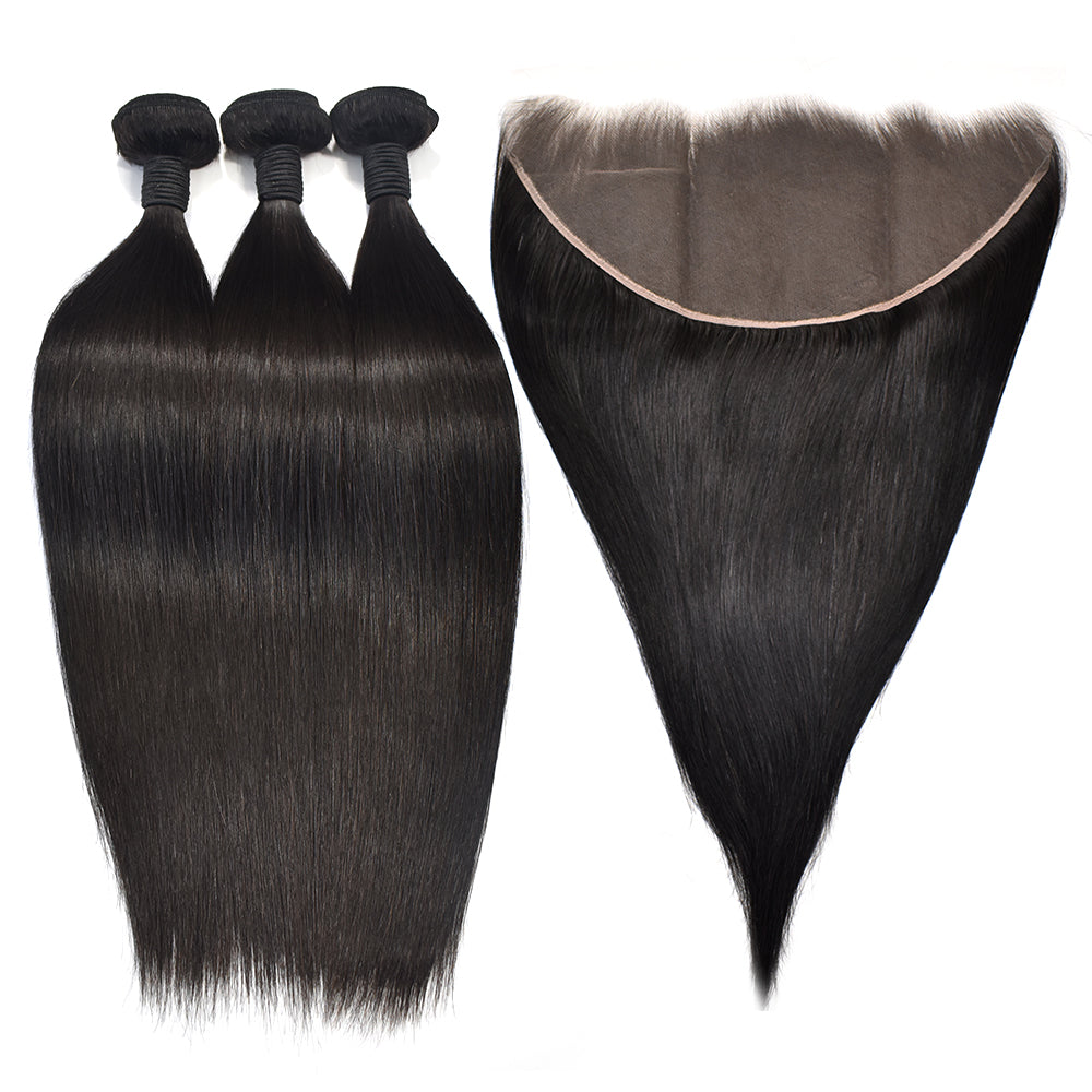 | Hair Bundles | Straight Bundles With Frontal 100% Unprocessed Human Hair 3 Bundles Straight With 13*6 Transparent Lace Frontal |