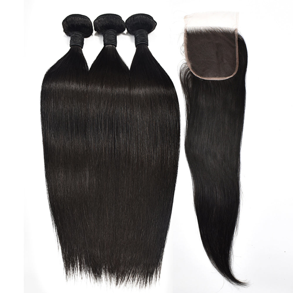 | Hair Bundles | Straight Bundles With Closure 100% Unprocessed Human Hair 3 Bundles Straight With 5*5 HD Lace Closure |