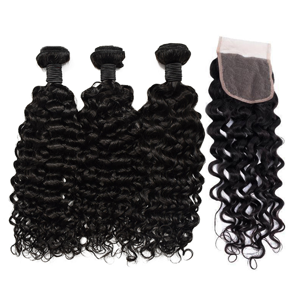 | Hair Bundles | Water Wave Bundles With Closure 100% Unprocessed Human Hair 3 Bundles Water Wave With 4*4 HD Lace Closure |